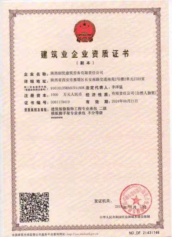 Copyright © 陕西创优建筑劳务有限责任公司 版权所有||技术支持:万商云集|企业资质
